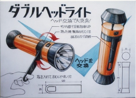 手回し充電で懐中電灯にも卓上証明にも、二通りに使えるLED照明器具をデザインしなさい。