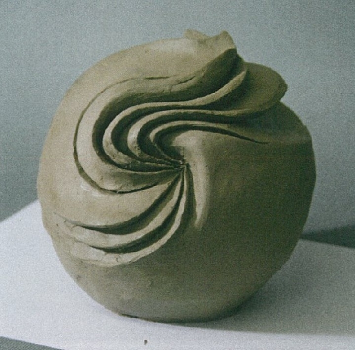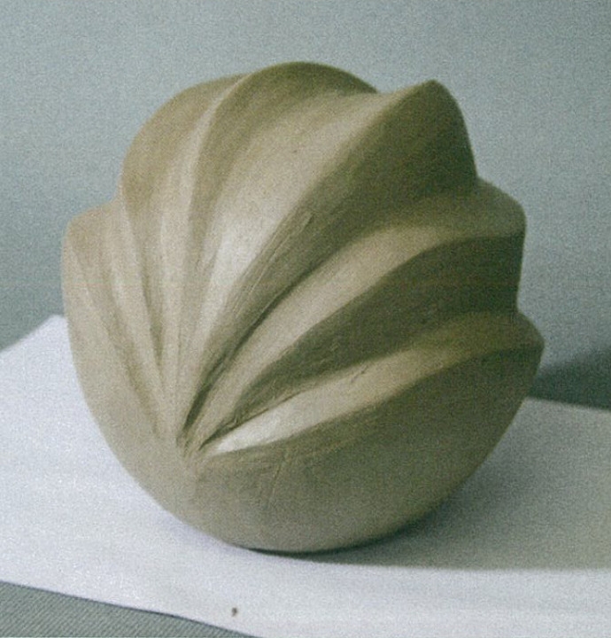 粘土3袋で球体を作り、その1/3を削り取って、美しい流れのある局面を作りなさい。