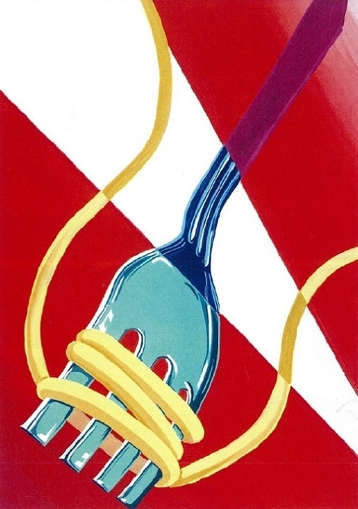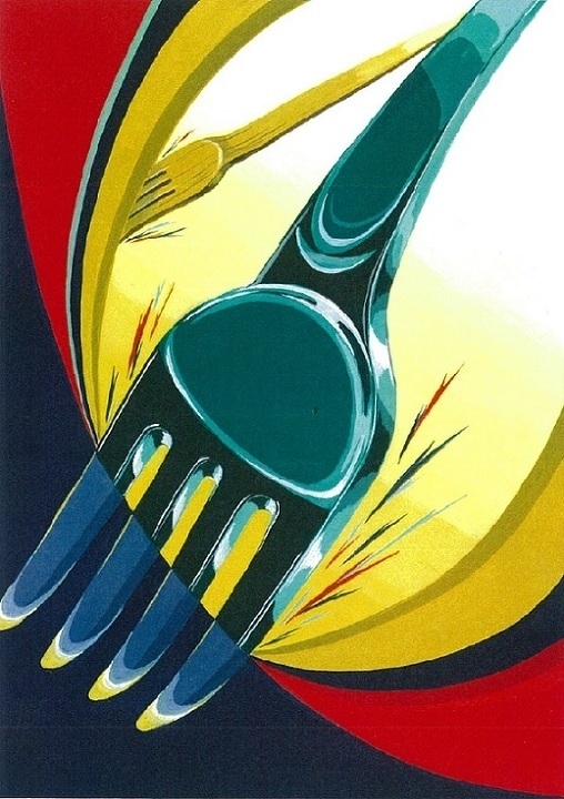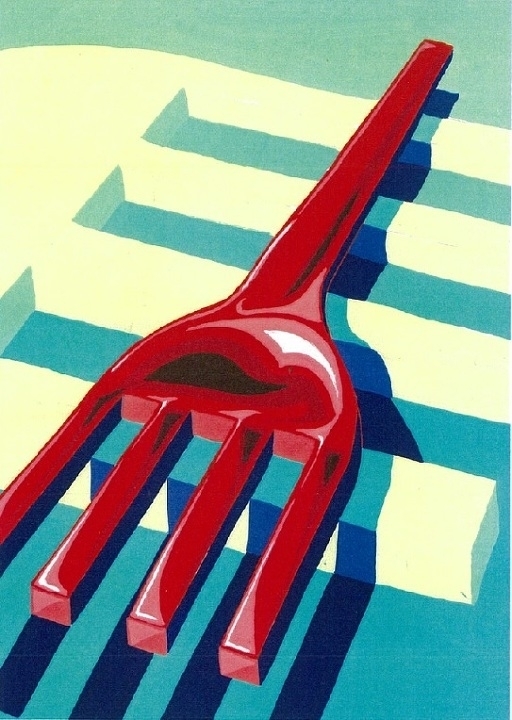 竹製のフォークの形の特徴を生かして自由に色彩構成をしなさい。