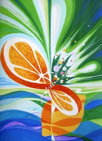 「果物」と「果実」で、清涼感のある色彩構成をしなさい。