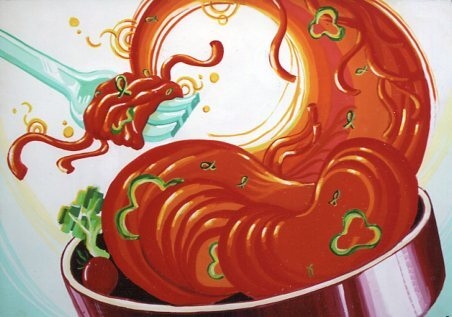 パスタで躍動感のある構図にすることで、元気がみなぎってくる様を表現しました。