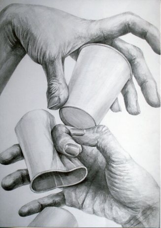 「自分の手」と「紙コップ」を自由に構成して描写しなさい。